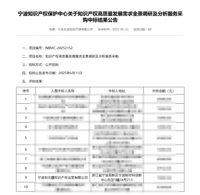 中标宁波知识产权保护中心关于知识产权高质量发展需求全景调研及分析服务